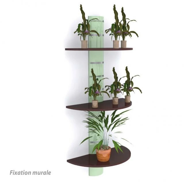Fixation murale de la colonne et emboîtement des tablettes dans les encoches de la colonne.