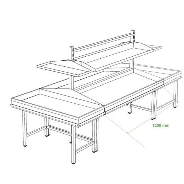 Ilot central fruits et légumes 120×135 cm structure noire + 2 devant de gondole.