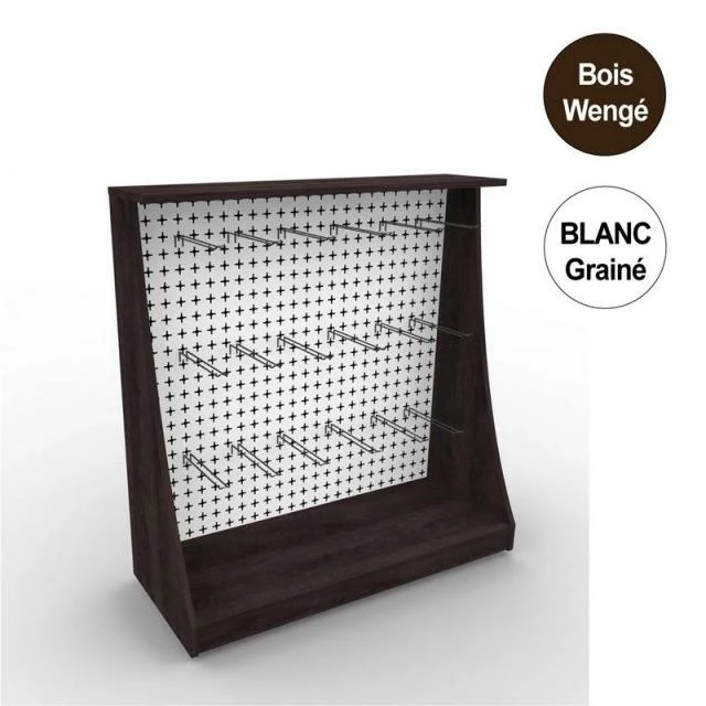 Meuble composé de 2 panneaux avec perforations croix + 2 joues latérales + socle + tablette sur le dessus et kit de 30 brôches doubles 300 mm.