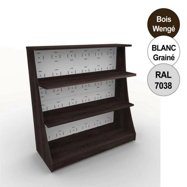 Meuble composé de 2 panneaux avec perforations carrées + 2 joues latérales + socle et tablette sur le dessus + 2 tablettes 1200 mm.