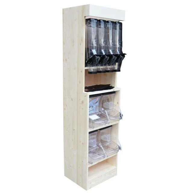 Conçu pour recevoir des distributeurs poignés, des bacs vrac, des fûts, des fontaines ou bien des bocaux. Une solution simple et efficace pour découvrir et proposer le vrac à vos clients.