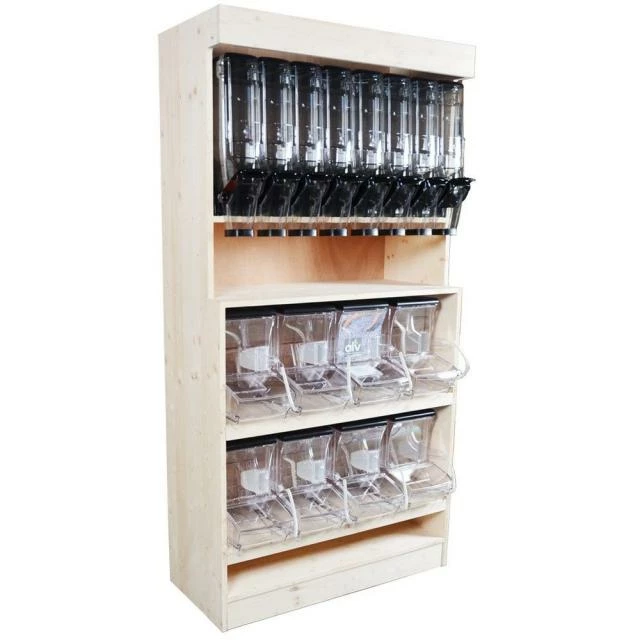 Conçu pour recevoir des distributeurs poignés, des bacs vrac, des fûts, des fontaines ou bien des bocaux.