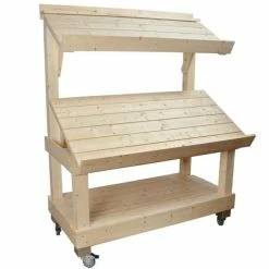 Remise 😀 Présentoir Fruits/légumes Bois Clair + Fourreaux + Roulettes 120x73x157 Cm 🥰
