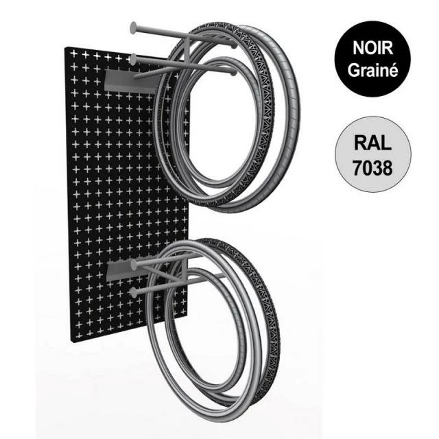 Ensemble composé d’un panneau avec perforations croix et 2 supports pneus indépendants.